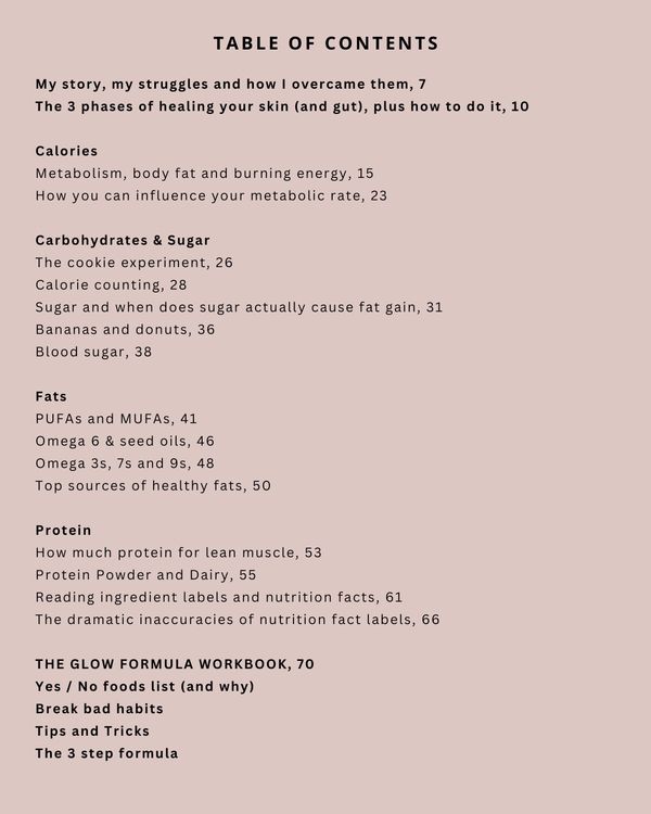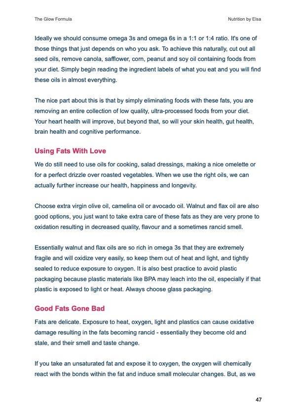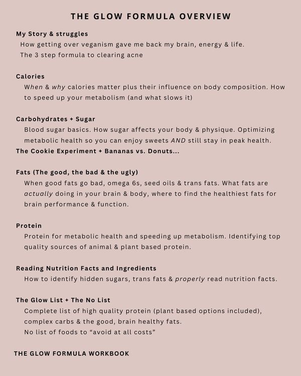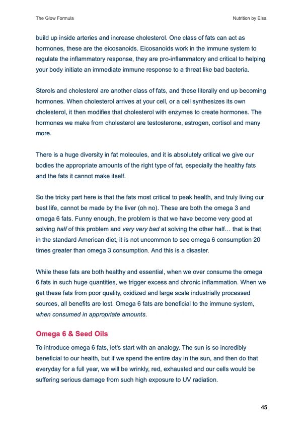 The Glow Formula is for you if you want to learn what to eat and why to eat it. Inside we breakdown the science behind nutrition. TGF was designed to empower you with the knowledge needed to truly understand seed oils, carbohydrates, protein and eating for optimal health and wellness.